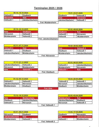Der 1. Wettkampf in der neuen Saison startet in der Woche vom 6. - 10.10.2025 gegen Nörvenich.